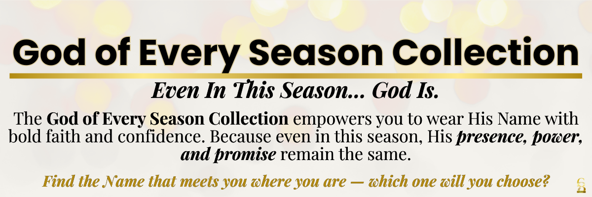 Each name in the God of Every Season Collection is more than a word — it’s a reflection of who God is and how He meets you in your season. Wear His Name as your reminder of truth, power, and identity — whether it’s Jireh (Provider), Shalom (Peace), Adonai (Lord), Yeshua (Savior), or YHWH (I Am). Every piece declares His presence and promises, helping you walk boldly in your faith and confidence every day.