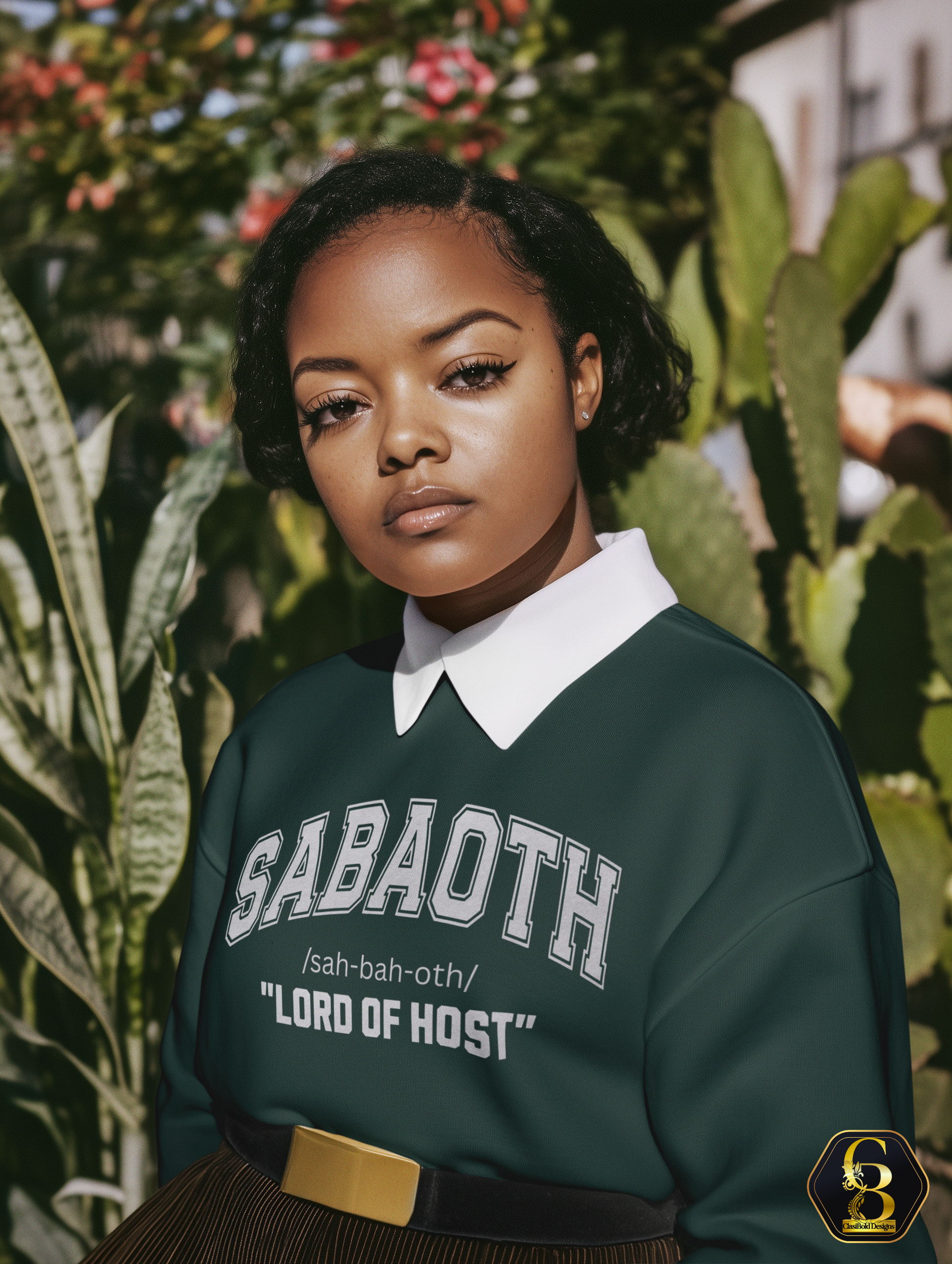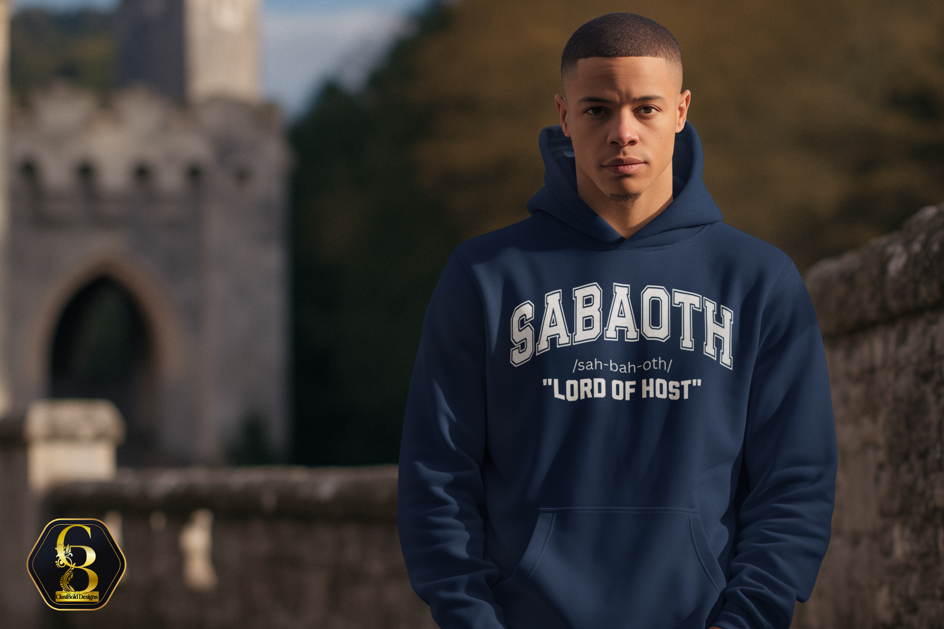 Honor the name that carries unmatched power and authority. SABAOTH means “Lord of Hosts,” declaring God as the Commander of heavenly armies — the One who fights for you, goes before you, and surrounds you with divine protection. Designed in a bold varsity-style layout with rich contrast tones, this piece blends strength and reverence in a modern, timeless look.