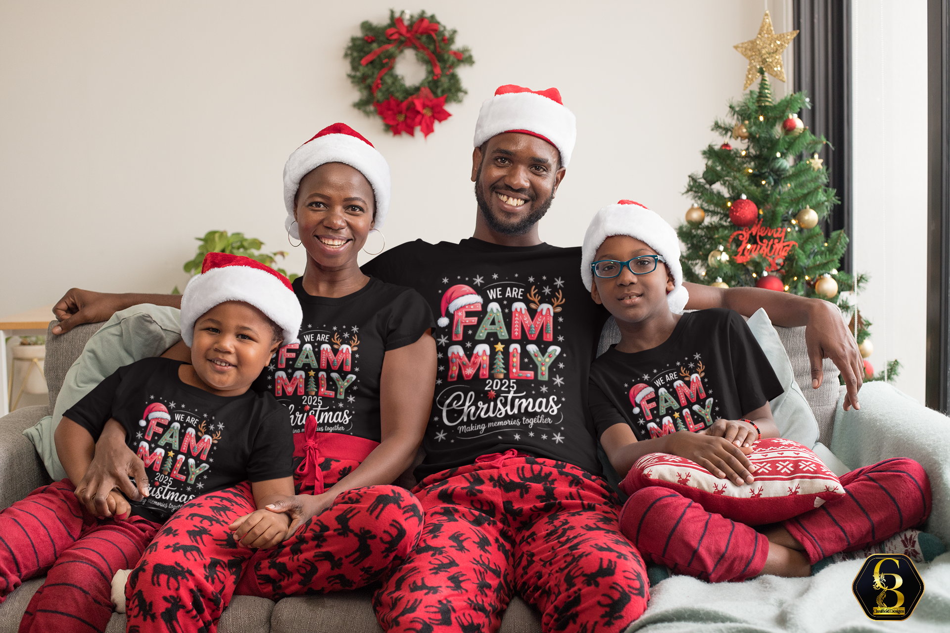Start Christmas morning boldly as a family with this cheerful holiday tee. Designed with playful cookie-style lettering, twinkling lights, and festive icons, this shirt brings everyone together for those magical moments — from matching pajamas to gift-opening joy. Perfect for unforgettable holiday photos and memory-making.